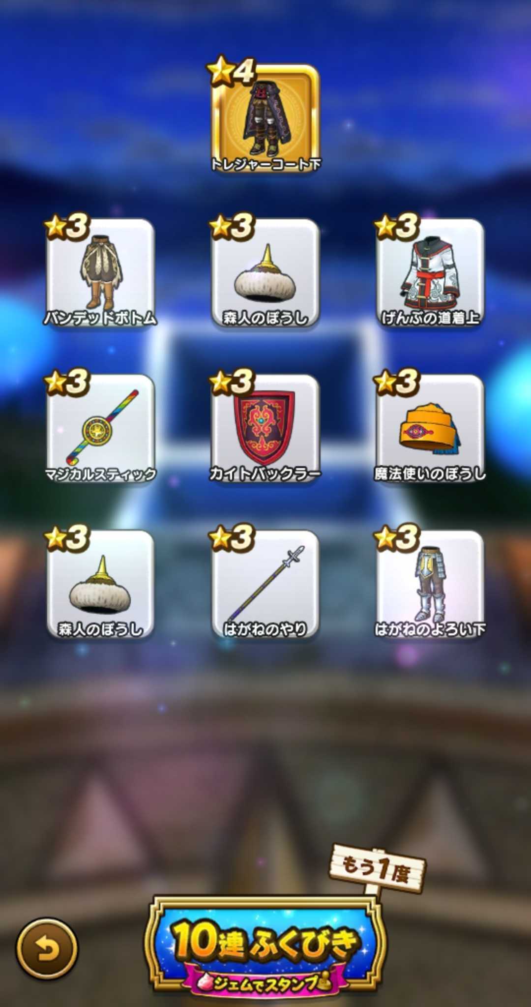 1回目の10連、行っきま~す♪ …げげっ! スライム星座に、全部、銀箱持ってきたぁ!?