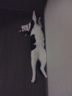 にゃんこは、上にのぼるのが大好きです。お腹がはみ出しそうな狭い棚の上だって、うまいことあがって、寝て(-_-)zzzいます。棚の上にいるさくらは、おとなしくて、すごく静かなので、まるで人形のようです。