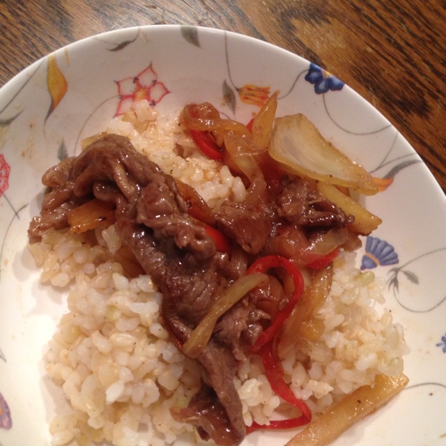 作りましたん(^-^) ちょっとしょっぱくなったから玄米に乗せてどんぶりにー♪ 二杯目に入りました。ぷくぷくしちゃうー((((;゚Д゚))))))) 一人で食べるのはちょっとだけさみしいけども、美味しく作れたから、おっけー(^-^)