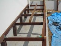 写真の一番外の根太。 思いっきり反ってますねぇ。