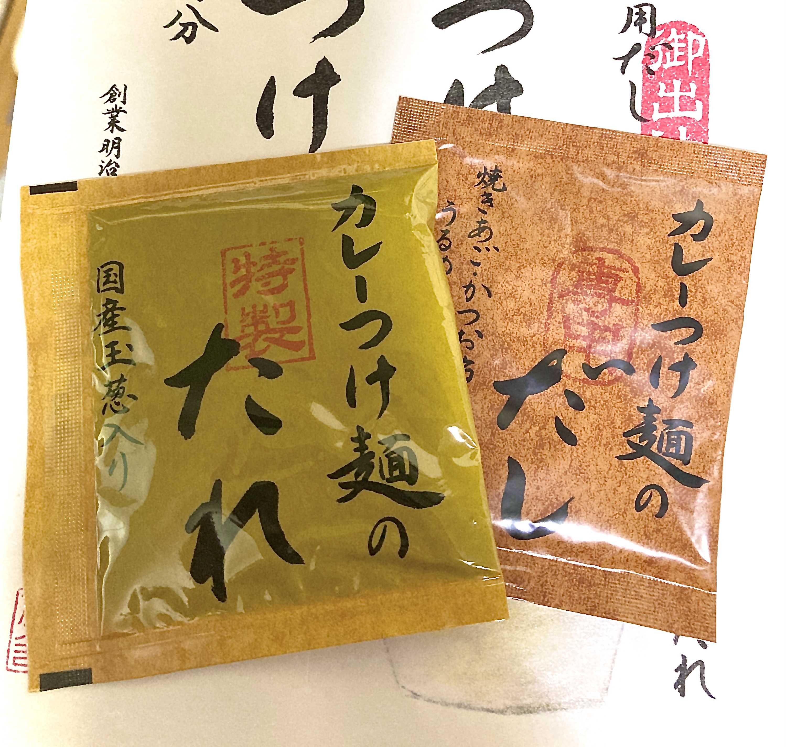 >> 「減塩茅乃舎だし」を使用した、破って使うだしがきいた和風カレーつけ麺キットです。
