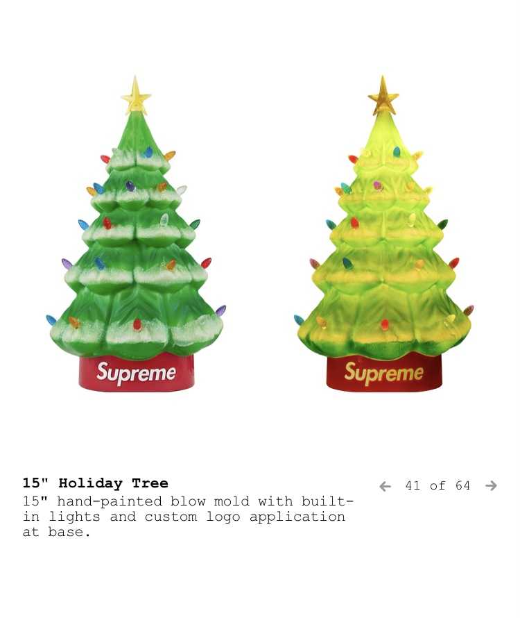 【 supreme 】の秋冬が公開されました。毎年買える時は【 supreme 】のクリスマスの何かを買ってます。このクリスマスツリー的な何か?が気になってます。