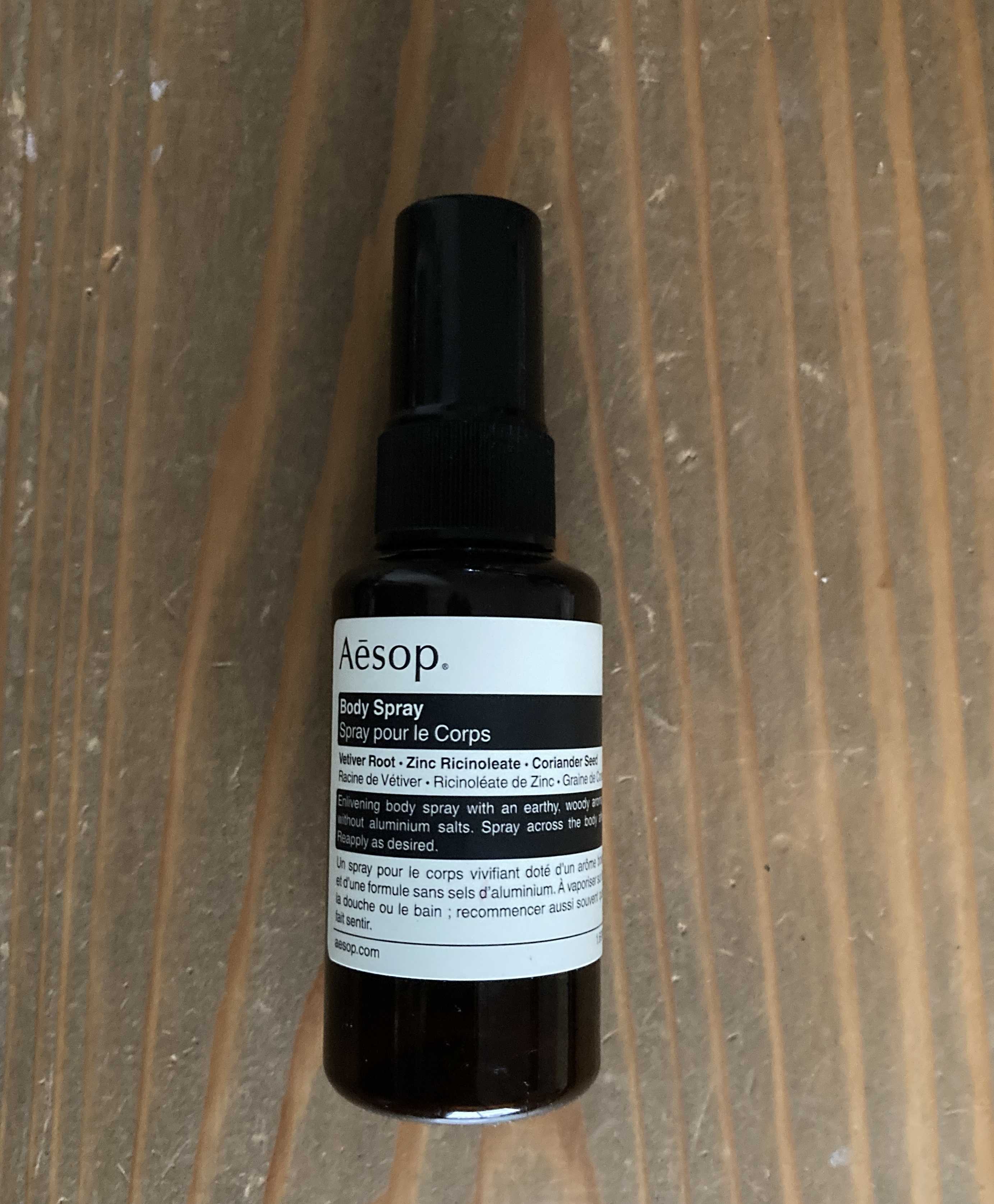Aesopの前を通るたびに良い香りで、ついに入店したらこのボディスプレーを買ってました。朝会社に行く時に体に2プッシュ位すると、夜まで香ってます。スパイシーのようで爽やかでいて安っぽくない大人の香り。もてそうな香りです。笑でも香水ではなくボディースプレーなのがポイント。>>爽快な気分にさせてくれるエッセンシャルオイルが配合されたボディスプレー。性別問わず、どなたにもご使用いただけます。アロマ:ウッディ、ハーバル、アーシー特徴:爽やかな香りが続く、持ち運びにも便利な軽量のボディスプレー。主要成分:ベチバールート1 ・ リシノレイン酸亜鉛2 ・ コリアンダーシード1 ,(1香料2基剤)50ml 4,400円(税込)こちら ⇨ イソップ ボディスプレー 50ml