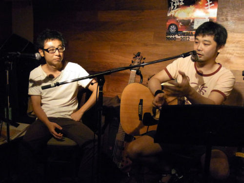 初めて来ていただいた方に 零式と下北沢のBAR? CCO もう長い付き合いのような気がします 10回以上、ライブをしてますからね でも、初めて出演したは今年の1月。 零式主催の零会であったり、松浦たくさんのイベントで 零式はCCOのお世話になっていますが 今回はCCOから招かれてのライブでした。 朝真と将人のステ-ジ ピックを使わずにギターをつまびく朝真 いつもより音が小さめのベース そしてセットリストはかなり珍しいものでした。月光少年の夢花ありがとう 最後の「ありがとう」は8月、恵比寿のLIVE GATE TOKYOで初演された 愛する人の誕生日に捧げた歌。 それ以外の3曲は10年以上前に作られた曲です 「少年の夢」は前回の渋谷HOMESで初めて聞きました 朝真は前回とは歌い方を変え、音量のダイナミズミを意識し、また違った感動。 しかし、いつも通り、朝真はよくしゃべる(笑) 演奏前、彼がぼくに、今日はちゃんと歌う、と言ったので期待してたのに… 新宿URGAでもこんなことがあった その時はいい意味で裏切られたのだけど バンドでのライブの時で、「銀河鉄道の夜」が間に合わなかった と言ってたのに、やってくれて、えらくうれしかった。 いろいろ話してましたが、最初の話題はツイッターでのこと ライブハウスのノルマ制への賛否が出たのだが その議論に対してあるミュージシャンが自分の意見を述べて 「みんなも言ってるよ」などと、付け加える。 独自性を保つべきミュージシャンが「みんな」を頼ってどうする 朝真はそれに、もの申したかったようです。 そんなこんなでいろいろ言ってると この日は主催者側から、そろそろ歌ってとか 2曲続けて歌って、という声がかかったほど。 次の零式は、11月11日(金)です。2011年11月11日(金)場所:池袋 鈴ん小屋時間:OPEN:18:30~/START:19:00~共演:外丸兼次 他チケット:2,000円(+1drink 500円)