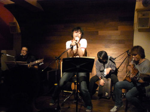 初めて来ていただいた方に 8月の零会で、ぼくは将人としゃべってました もう、今年一杯の零式のスケジュールが発表されていて 妻の誕生日の12月14日(討ち入りの日(笑)に 零会があることが、わかっていました。 零会というのは、いままで何度も紹介してきましたが 下北沢のBAR? CCOで開かれる 零式主催のアコースティックライブのこと いつも、こんな感じですね↓これで、うちの家族全員の誕生日に零式のライブがあることになったよ と、ぼくが将人に言うと、彼はじゃあ、奥さんを連れて来て下さいよ と招いてくれたのです。 帰宅して、妻にそのことを言うと 行ってもいい、と言うではありませんか。 いままで、妻や娘には何度も零式の曲を聞かせたり 動画を見せてきました 娘を一度、誘ったけど断られ(苦笑) 妻は超多忙なため、わざわざ都内までいっしょに出かけるなんて 考えてもいませんでした。・・・・・・・・・・・・・・・・・・ そして、当日 今年最後の零式ライブがありました。 朝真が妻を、丁寧にきさくに迎えれくれました 将人は多少、はにかんだ感じで言葉少なく。 少ししゃべっただけで、妻は 朝真が頭の切れる、楽しくて話題豊富な人間だと わかったようです。 さて、零式は三番目に登場し、朝真がMCを始めました。おれには、年上の友達が何人もいるみんなも知っているその一人は、今日も来てるこの人が、ぼくは家族の中では存在感がないんですよと言って、ガハハと笑うのを見ているとおれも家族を持ちたくなるその奥さんが、今日、誕生日なんだ。 などと言って、もったいないことに アカペラでハッピーバースデイの歌を歌ってくれ 最後は観客もそれに加わってくれました。 そのあと、将人からプレゼントまで。ニーソックスと白いフリフリのパンティ 意味不明(笑)ハローワールドもらい泣き歌うたいの野望冬スタンドバイミー(アンコール)銀河鉄道の夜隼 「ハローワールド」では、時事ネタを交え 刑務所に自殺したと言われている囚人がいるが 自殺じゃないだろ、とか尖閣諸島問題にも触れ 将人の超絶ソロ。 江島さんが初めて、ステージで演奏する 久しぶりに聞く、この季節には零式に定番「冬」では その江島さんのソロが泣かせました。 最近の朝真は「スタンドバイミー」のリフが始まっても なかなか歌い始めなくて メンバーや客から早く始めろ とツッコまれることがあります。 今回も、グダグダ話してると、辻さんが♪な〜んにも言わず♪ と歌い出しました。 すると、(愛の歌だから)Woogさんに歌ってもらおう と朝真が言って、もちろんぼくは、いやいや といったん断ったのですが、お客さんが、OKしてくれたので マイクをもらって歌ってみました。 歌詞が飛んだ(苦笑) 朝真に歌詞を教えてもらいながら うれし恥ずかしのワンコーラスでした 恥ずかしくて、前を向けず、目線はずっと下。 ぼくは頼まれもしないのに「スタンドバイミー」の英語の歌詞を書いています だから、この曲は完璧にマスターしているつもりだったのに、、、 めちゃくちゃ悔いが残る もともと頭が悪いのか、年のせいか いつものように、おおいに盛り上がったライブが終わると いままで、何度も言ってたのですが 実際に演奏を目の前にして、妻は朝真の心に響く歌将人のテクニック零式のバンド全体のアンサンブルのすごさ に感動していました。 妻には、あまりにも、もったいない楽しい誕生日 彼女には、そのすごさが半分くらいしか わかっていないように思いますが ぼくも、えらく感動しました。 この場を借りても、将人と朝真 そして零式に、感謝したいと思いますどうも、ありがとうございました そして、暖かく見守ってくれた この日のお客さんのことも忘れません。 ライブが終わると、妻は 代々木発の夜行バスに乗って、田舎に帰りました 実家の掃除をしに行ったのです。 ああ、忙しい 見てるほうが疲れる(笑)