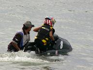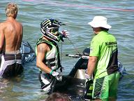 いよいよ土曜日。いつものように朝も早くから会場入りして聞いても意味不明(オールイングリッシュなのよ^^;)のライダーズミーティングに参加。しかも今回はおぼっちゃまくんも一緒プラランで走ってみるとこれが意外!? 「思ってたよりブイが少な~い」予選はLCQ(敗者復活)がないので気楽に走ってサクッと終了自分よりも緊張したのがおぼっちゃまくんのレース 練習はじゅうぶんしたけどそこはまだまだ初心者。みんなのひき波を走るのがかなりしんどかったみたい。途中コケたあとなかなか走り出さないので心配してたら、落ちたときゴーグルをなくし、ゴーグルなしではダメだと思った彼は湖底に沈んだであろうゴーグルを探してたらしい。。。でもさすがに見つかるわけもなくオフィシャルに何か言われて再びコースへもどっていきましたはらはらドキドキのハバス初レースとなりました 次回はこの日の午後行われたMINIMOTOをお伝えします ☆つづく☆