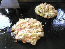 大阪から戻った数日後、まさみっちぃ夫婦はお好み焼き屋さんへ向こうでふと立ち寄ったお好み焼き屋さんは店員さんが焼いてくれる方式。目の前で本場?の焼き方をじっくりと見てきたので忘れないうちに実践デス。 (できあがりが楽しみ~♪) (いいにおい~~~)元の生地の違いなどはあるけど、いつもよりはちょっと美味しくできたみた~いやっぱり本場仕込みは違う 家で作るとなんか粉っぽかったりおイモを多めにするとイモっぽすぎたり、なかなかおいしくできないんですぅ~(誰か知ってたらおせぇてぇぇぇ)この日のメニュー:ミニサイズ3点セット + ミニサラダ (ミックス、牛すじとネギ、もちチーズ)二人でシェアして食べました(個人的にはチーズがちょっと重かった)