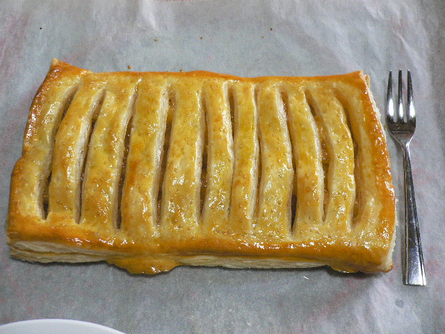 さて、みなさんお待ちかねのアップルパイですぅアレ!?待ってませんか???初回作の画像を撮らなくて正解!というぐらい今回はちゃんとおいしそうにできましたよ 。いかがです?今回は果肉の1/4を小さく刻んで煮詰めてみたところマックのアップルパイに近い味になったらしいデス。(ちゃんとシナモンも入ったしネ)これなら売れるかな??? 味は決まったので次は上面のパイを網目模様にしてみようかなこんなに引っ張るほどの内容でもなかったかなぁ・・・