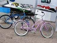 今回は広い会場内を移動する足編デス。 (かわいいペアチャリ) (奥のはモンスター仕様見えるかな?) (バッタみたいじゃない?!)ピット<->ブース<->パーキング までと歩くとかなりしんどい距離もこれがあればオッケーさ でも、ブースエリアはエンジン付は乗り入れ禁止人がいっぱいで危ないからね