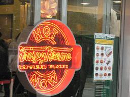 珍しく流行モノをいち早く(!?)ゲットし行ってきましたそう、うわさのクリスピークリーム平日だというのに人がいっぱいお店のデッキ部分だけでは足りず店脇にまで列が・・・でも、次いつ来られるかわからないのでもちろん並びました1時間たってやっとウインドー沿い。ウインドーにはそれぞれの作業工程の名前とその内容が書かれていました。店内にやっと突入!と思ったらまだ列が続いてた。。。でも、ありがたいことに店内入り口でできたての試食を配布中。もらってみるとあったか~い。しかも口に入れると感動するくらいやわらか~い。 小腹が満たされたところで何をオーダーしたかはまたあとで♪
