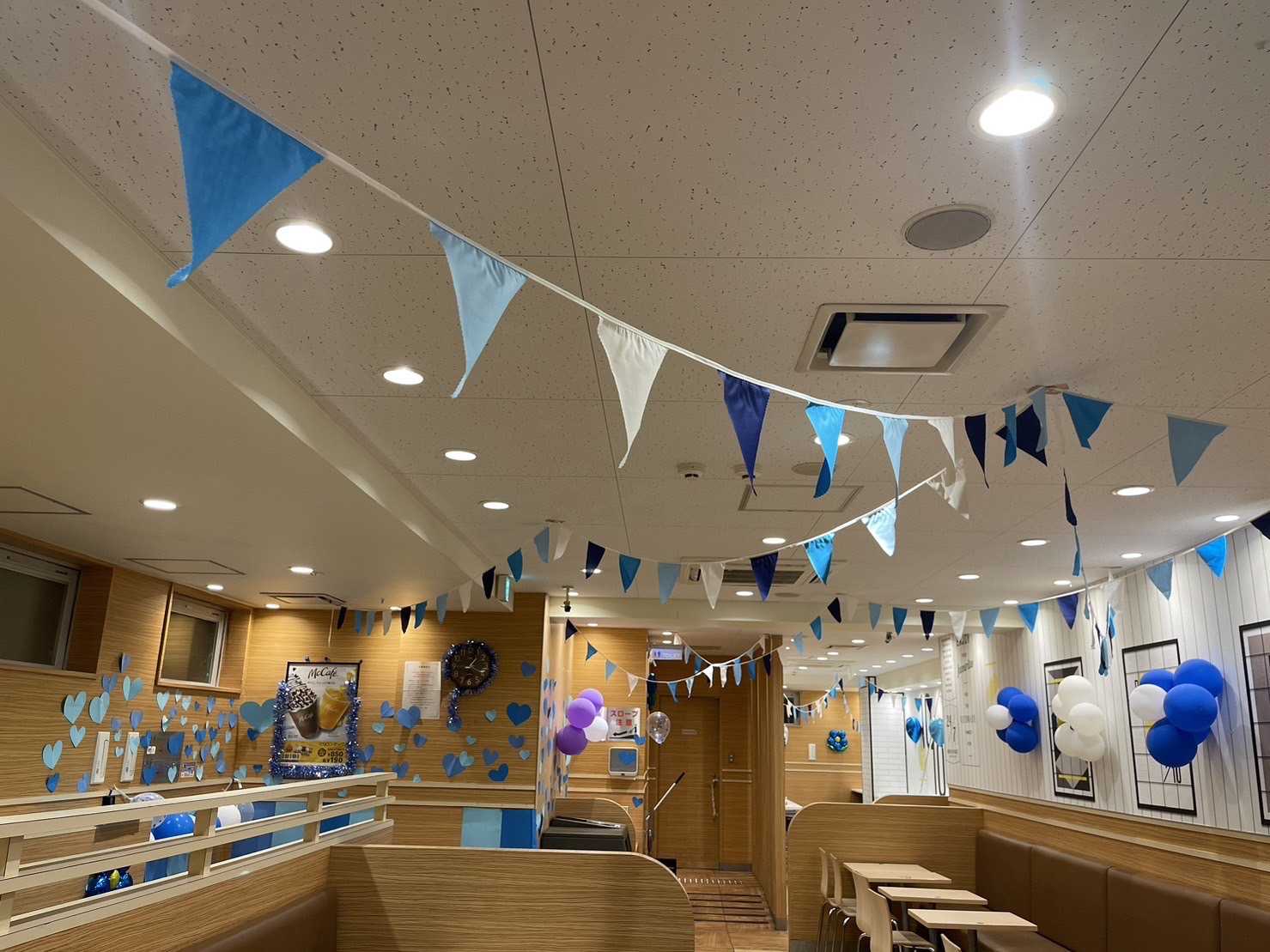 あわせて画像のように店舗を青で飾りつけを。