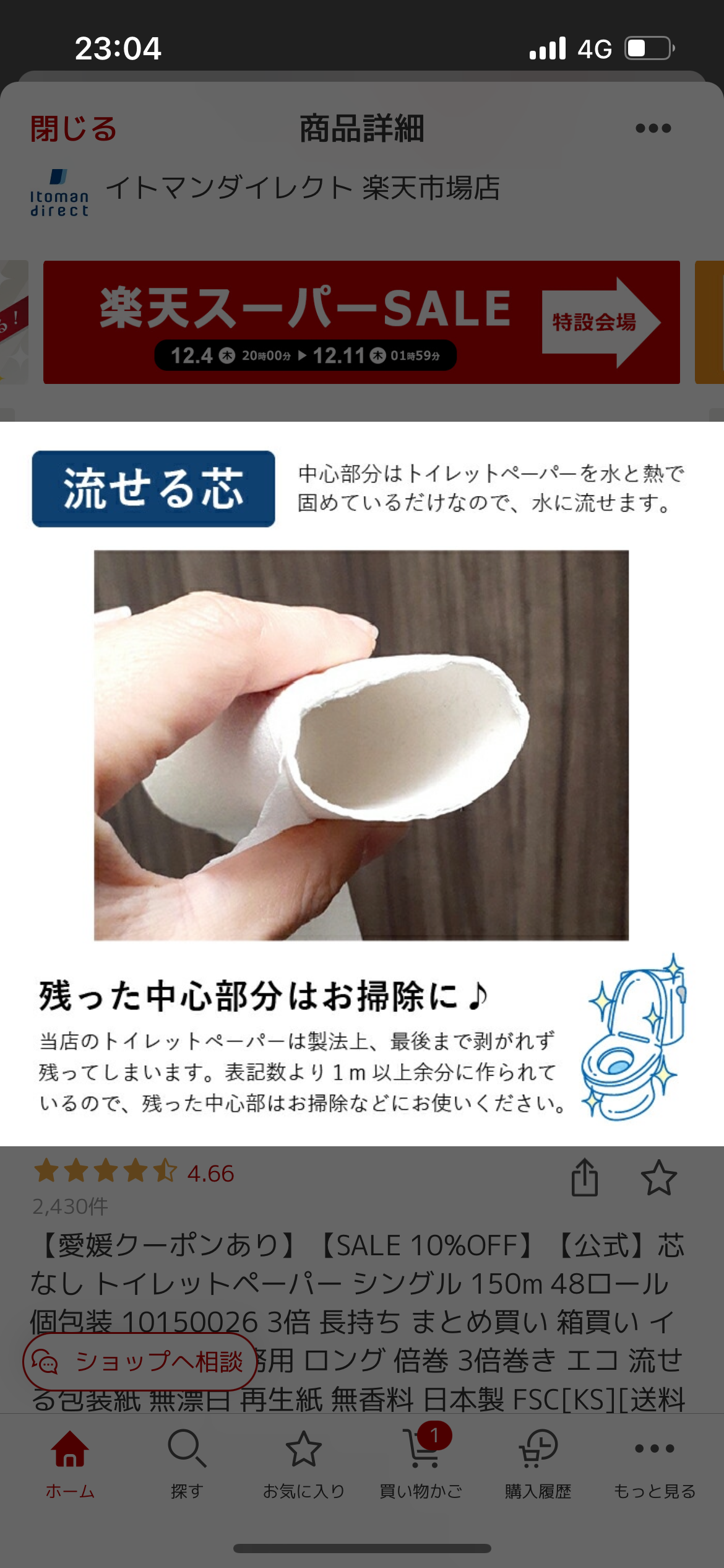 イコット芯なし 「最近イコットの芯なしシングルを使ってるんだけど、すごく便利なんだよね。