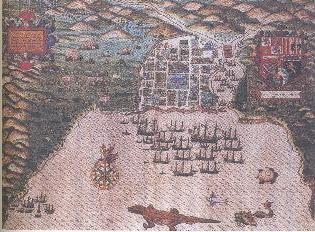 ハイチに贈る (13)さて、市民たちに割り当てられた土地は、そこで働く人間がいなければ意味はありません。近代以前の社会では、土地の割当はその地で働く人間とセットになっているのです。江戸時代には、良く大名の転封が行なわれていますが、移動するのは武家とその雇い人のみで、働く人間にとっては、貢納を納める相手が交代するだけでした。家を建て、耕地を耕し、都市基盤を整備するためには、労働する人間を持たねばなりません。このため総督は、市民団の人選を済ませると、市民たちに都市周辺の村をエンコミエンダとして授与するのです(殿様が家老以下の家臣に、○千石とか○百石とか割り当てるのと同じです)。ですから、総督からエンコミエンダを授与された者だけが、都市における市民団すなわち都市支配層を形成するのです。土地の地割りが終ると、市民たちは割り当てられた村々に出かけ、村長や長老と顔つなぎをして、貢納や賦役の中味について話をつけるのです。先ずは賦役の提供です。送られて来た賦役労働力の1部を用いて自己の屋敷を建て、残りの労働力は都市のインフラ整備のための公共の用に提供するのです。こうして、スペイン領植民地の都市が建設され、征服スペイン人の都市が形成されるのです。スペイン領植民地の最初の都市は、コロンブスの弟バルトロメオが、1496年にエスパニョーラ島に建設したサントドミンゴ市でした。コルテスは、征服したアステカ王国の首都テノチティトランを破壊して、その廃墟にメキシコシティを建設しています。1521年のことです。ところでスペイン人支配層は、農村の領地に居住して農業経営に勤しむことは、全くありませんでした。特に入植の初期段階には、支配層は勿論スペイン人の開拓自作農すらも、皆無だったのです。農村のエンコミエンダは、貢納の対象であり、入植市民の大切な財源でしたが、そこに住み込んで農村の領主になることは、決してしなかったのです。スペイン人の生活圏は都市であり、農村は先住民インディオの生活圏だったのです。エンコミエンダを所有する征服者市民たちは、都市に居住して都市支配層となり、エンコミエンダからの貢納を定収として、スペインから係累を呼び寄せ、使用人を雇い、大所帯の主となったのです。この時彼らが建てる邸宅や教会、市庁舎などは、当然故郷であるスペインの憧れの城館や教会を真似ることになります。そして、都市生活の維持に必要な職人や商人、専門職の持ち主についても、スペインから志願者を呼び寄せ、自ら顧客となるのです。そればかりか、自らの配偶者もまた、都市支配層の自分に相応しい相手をスペインから見つけてくるのです。ギルド制度の下で、親方になる道がほぼ閉ざされていた職人たちは、新世界では親方になる道を喜んで選びました。ですから移住者の徴募に大きな困難はなかったのです。こうして都市のスペイン人社会は、早い時期に安定し、その生活を軌道に乗せることが出来たのです。1枚写真を載せておきます。この地図は、1588年にロンドンで作成されたサントドミンゴ市の古地図です。キャプテン・ドレイクの率いるイギリス艦隊が、1580~86年にかけて、スペイン領アメリカ各地に遠征して、海賊行為を働いた際に、サントドミンゴ市を短期間占領した時の情報を下敷きに作成されたものです。ユネスコの世界遺産に指定されているサン・ドマンゴの旧市街が、この段階でほぼ完成している様子が見て取れます。 続く