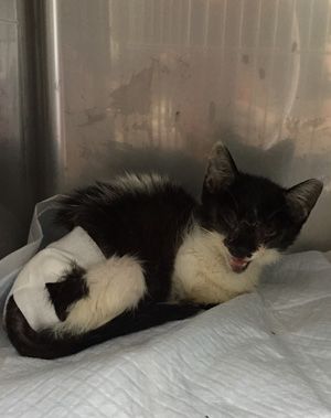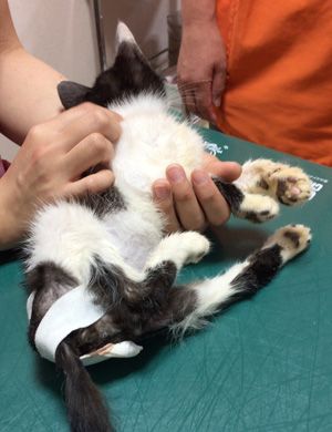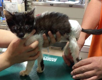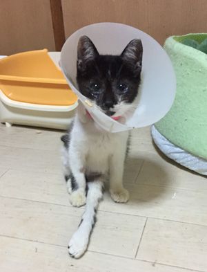 酷い骨折で、左後ろ足が曲がったまま繋がってしまい
