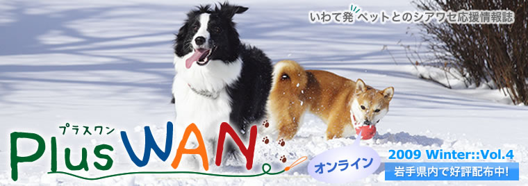 昨年の4月に創刊しました岩手県発のペットとの幸せな暮らしの提案情報誌「プラスワン」の第4号冬号が本日発刊されました。今回の表紙はこんな感じです。こちらはプラスワンオンラインと言いまして、プラスワンのWeb版のトップの写真を拝借してきました。プラスワンをお手元で見たことがない方は、ぜひこちらのプラスワンオンラインをご覧ください。こちらをクリック!!http://plus-wan.info/今回のプラスワンの私の記事において、ロハスな生活の1つとして、「自分の内なる声に耳を傾け、その声に素直に生きる」これもロハスライフ!?というテーマで私の内なる声に耳を傾けた写真を掲載しました!それがこちらのアドレスです。ぜひみなさんご覧くださいませ。内なる声はこちら!http://plus-wan.info/2009/02/iwate-is-lohas.html#more今回の第4号より岩手県内の動物病院さんの一覧表を掲載しまして、ペットを飼っている方にぜひ役立てて頂きたいと思っております。今回は初回ですので、盛岡市内のみとなっておりますが、ゆくゆくは岩手県全域を網羅したいと思っています。みなさま、ご協力の程、よろしくお願いいたします。