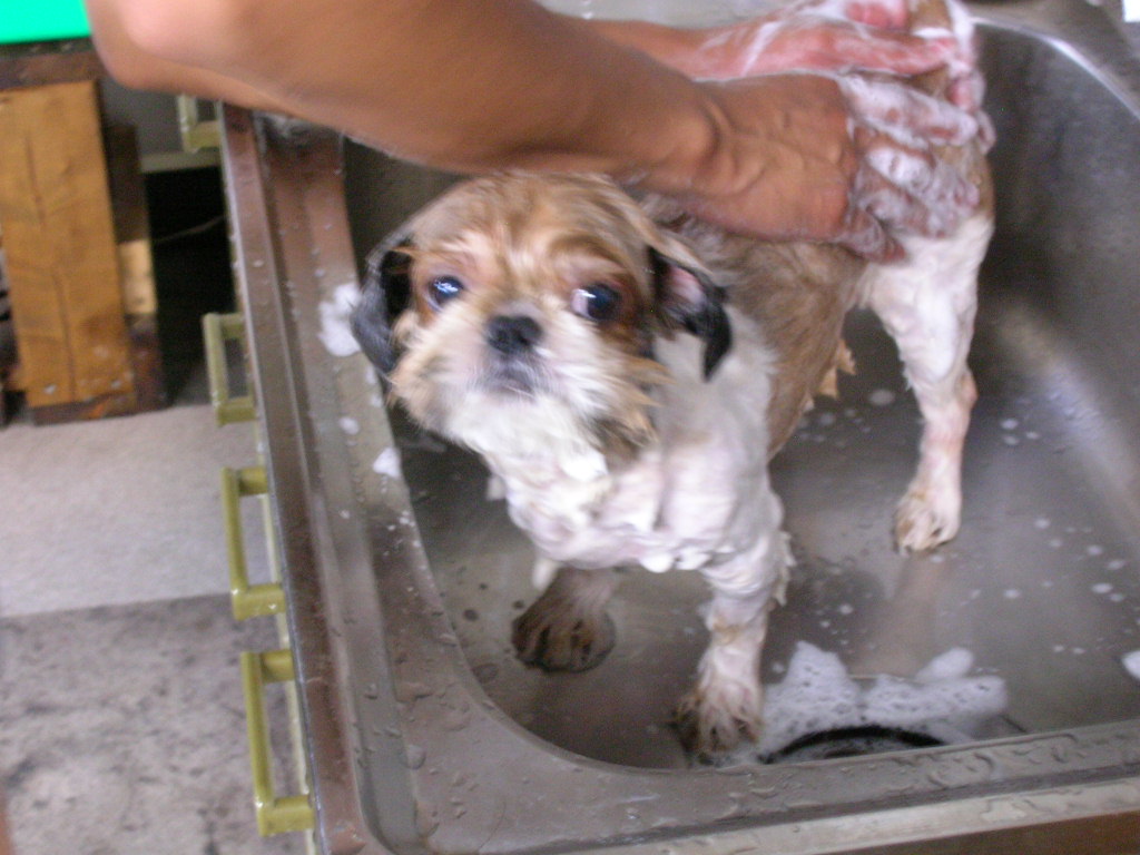 昨年の夏頃、シオンの製造スタッフの愛犬、シーズーの「王子(おうじと呼んでます)」が一時期シオンのメンバー(=番犬?!)として会社におりました。製造の作業中はおとなしく、いつも寝ているのですが、宅配業者さんが来るととにかくほえる!ほえる!そして、宅配業者さんが帰るとまるで勝ち誇ったような&自分の仕事をして満足したような顔をしていたのをよく覚えています。このシーズー犬の王子ですが、そもそもシオンに最初に来たときにどうも発疹が出来ていたようで、全身がかゆいらしく、常に足で全身をかいてました。そして、部位によってはかきむしりすぎて、血が出ていたことも。そんな最中、スマイルペットシャンプーをちょうど開発しておりまして、試作の段階で王子の身体を洗うときにも使っておりました。そのときの写真がこちらです。その後、スマイルペットシャンプーは完成し、その後も王子の身体を洗う際にスマイルペットシャンプーを使ってもらったのですが、それからほどなくして発疹はきれいになくなったとのこと。そして、からだをかきむしることもなくなり、よくなったとのことです。飼い主である製造のスタッフも自分がつくっているペットシャンプーで愛犬の発疹が治ったので、その仕事にもやりがいを感じているとのことです。最近、スマイルペットシャンプーのサンプル請求が増えていることについて、製造スタッフも俄然やる気をもってやっている感じですので、ぜひ無料サンプルをお試し頂ければ幸いです。シオンのスマイルペットシャンプーのサイトはこちらになります。http://www.xion.co.jp/pet/index.html