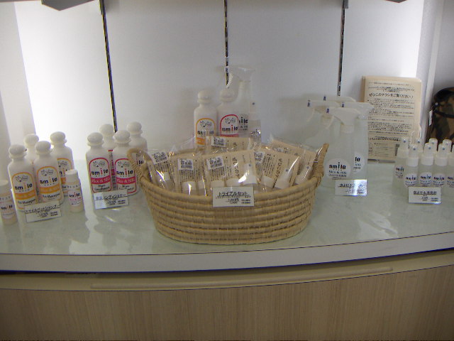 昨日、盛岡市の中心部にあります老舗百貨店川徳さんのキューブ2にあるペットショップさんにスマイルペットシャンプーPR用のPOPを届けに行ってきました。そこで、お盆前に納品した最初の製品の陳列をみると、なんとびっくりでした!!!レジの左横にある長さにして90センチくらいあったでしょうか、よく目に付く陳列スペースにスマイルペットシリーズ3アイテムを置いて頂きました。こんな感じです。地元でも川徳さんに商品を置いてもらうのは結構大変。。。と言われている中で、これだけのスペースをとって頂いたことは大変ありがたいことです。しかも、スマイルペットシリーズは自分で開発し、ここ岩手県の矢巾町にてつくっている、それを思うと「この仕事をしていてよかった」と素直に実感できます。これだけのスペースをとって頂いたので、私としても積極的にPRして、少しでもこちらにて購入して頂けるよう努めていきたいと思っています。