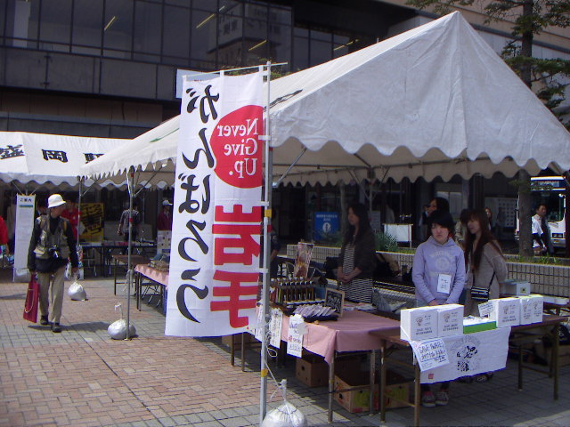 昨日5/3は地元岩手県盛岡駅前でイベントをやってました。イベントがはじまるとここ盛岡のさんさ踊りなどのアトラクションが目白押しでついついそれに見入ってまたしても写真を撮らずに。。。でも、見入る前に撮影したショットを紹介しますとこつらが私たちが岩手県の物産を販売したブースミスさんさとさんさを踊ったきれいどころ。イベント終了後、イベントに参加したメンバーと一杯やりました。その前に盛岡城の満開の桜を見に行きました。昨日は久しぶりに4時台から飲み始めました。かなり盛り上がって時計をみたらまだ7時。でも終わったら深夜1時。盛岡の春の昼夜を満喫した1日でした。