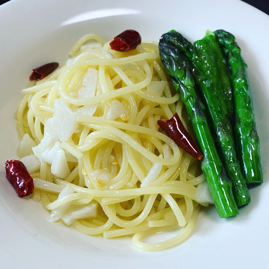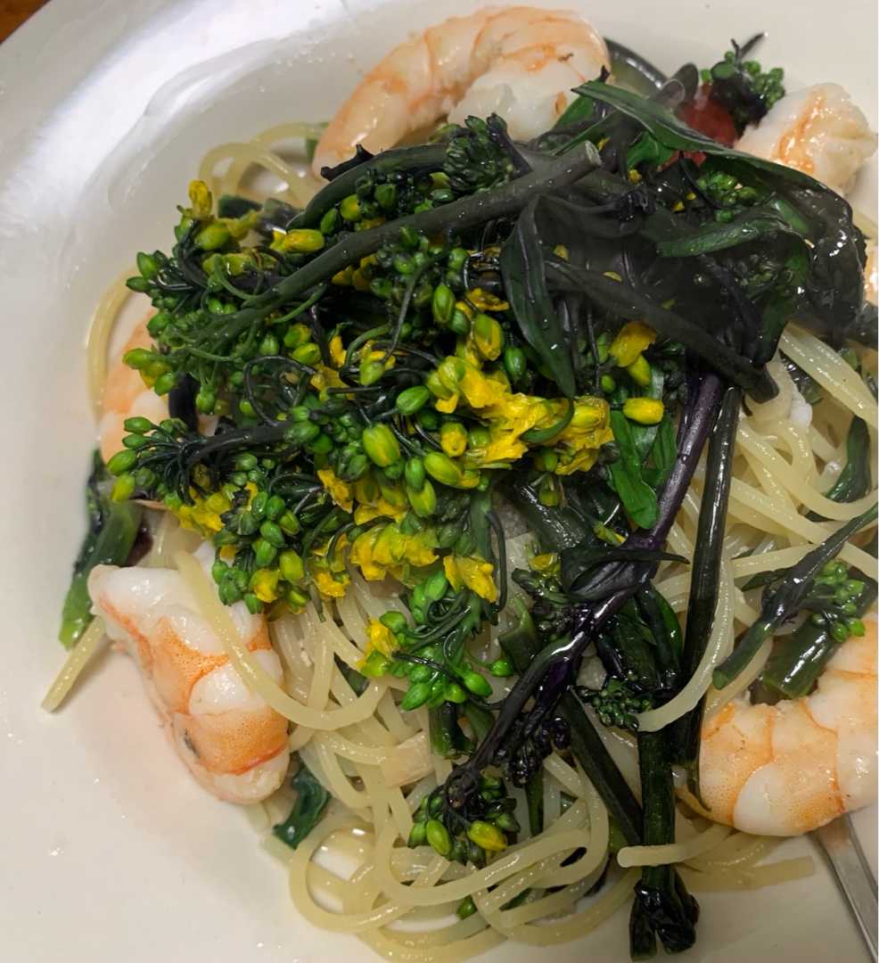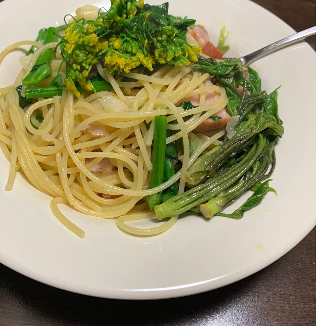 山菜の女王と呼ばれる"コシアブラ"を使ったペペロンチーノを作ってみました。右手前に横たわっているのがコシアブラ!あまり火を入れないで、余熱で混ぜるぐらいが丁度いいかもしれません。今日も塩尻野菜の恩恵に感謝!!受注開始後、まだ日が経っていませんが、結構人気っぽいです。まだまだご注文お待ちしています。↓https://www.dub-design.online/items/29142976