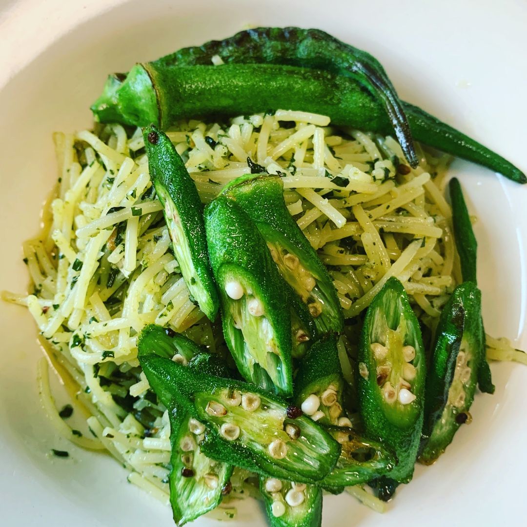 暑い日が続きますね〜畑のバジルが大量に取れたのでジェノベーゼ作ってみました。レシピ(1人分)パスタ 100gバジル 大きめの葉っぱ10枚ニンニク おろしニンニク 2片パルメザンチーズ 好きな量オリーブオイル 30g塩 少々トッピングオクラ マルっと2つ スライス2つ冷製パスタなんで、事前にパスタ以外のものは合わせときます。我が家にミキサーがなかったので、微塵切りにしてすり鉢でゴリゴリしてからオリーブオイル、ニンニク、塩を入れてパルメザンチーズを合わせる。パスタは、余熱をとって氷で冷やしたら、完全に水気をとってソースと合わせると完成!トッピングのオクラは、オリーブオイルと塩で炒めて盛り付け最後に添えました。お盆シーズンで、実家にも帰れないので食事だけでも楽しめるように○そろそろ10000アクセス到達しそうで、こんな適当なパスタレシピを見ていただけているなんて感謝感激です。【賞味期限:21.11.10以降】ディチェコ No.11 スパゲッティーニ 500g / パスタ DE CECCO《ディチェコ》カッペリーニNO.9(0.9mm)【500g】【ディチェコフェア】日清フーズ ディチェコNo.50 コンキリエリガーテ 500g【安心の正規輸入品】【ポイント5倍】