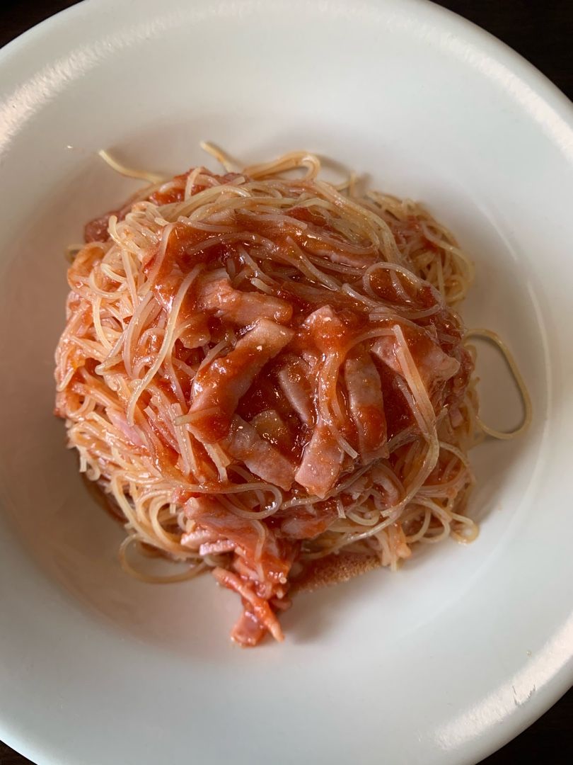 コンビニで手に入る材料で冷静パスタ!たぶんそうめんでもイケます。荒ごしトマト 70gベーコン 好きなだけ塩 小さじ一杯砂糖 小さじ一杯オリーブオイル 30g麺を茹でて水で締めたらソースと和えるだけ!!バジルとかのせたらいい感じですね!