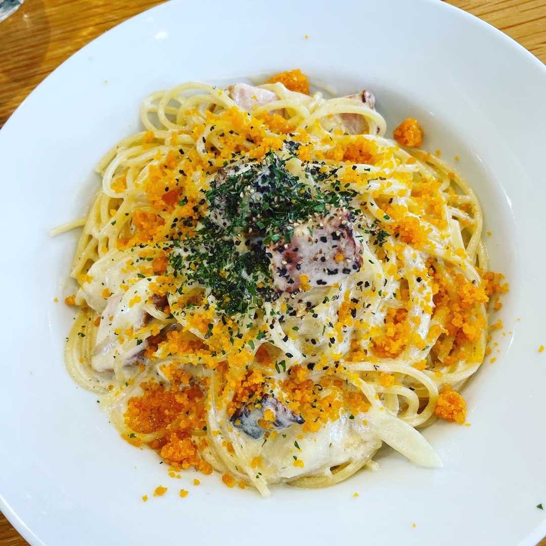 今日は友達の家の近くのパスタ🍝やさんでランチ カラスミのカルボナーラ ツナと大葉の…