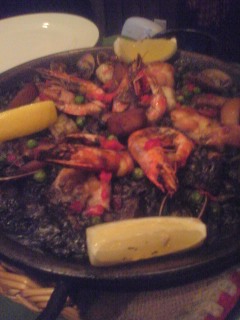 友達が来るということでディナー予約しちゃった行ったのはスペイン料理。恵比寿にあるTIO DANJO(ティオ・ダンジョウ)というお店です。店内は思ってたよりも狭く、キツキツな感じ。雰囲気は恋人と行くよりも友達同士でワイワイって感じ。まずは生ビールをオーダー。やっぱどこ行ってもビールから始まる・・お料理はいろいろ頼んでみたけど印象に残ってるのはレバーパテ、イベリコ豚のなんちゃら()、イカ墨のパエリア。レバーパテはマジうまーもともとフランスパンが好きやし、レバーも大好き!だから文句なしにうまーwイベリコ豚は生ハムだったんかな?普通に美味しかった。んでんで最後のイカ墨のパエリアは最高やった!今まで食べたパエリアの中で一番味が濃くてあたしに合ってたかも。おいしか~って連発してました^^;人のいい店員さんに乗せられ、4人でワイン4本、チェリー酒、たらふく食べて3万チョイ思ったよりも安かった。