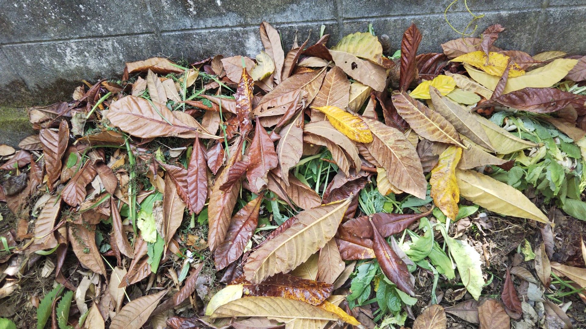 落ちたビワの葉の塊。