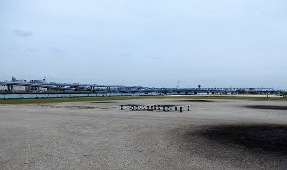 (平井運動公園 奥に見えるのが平井大橋と総武線の鉄橋)