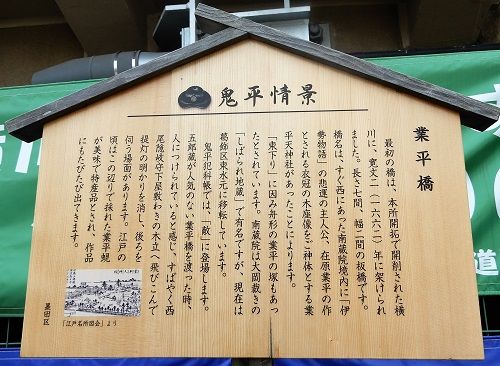 五郎蔵が渡ったのは、夜の「人気のない業平橋」、ヤカモチの渡る業平橋は人通りの多い、昼間の業平橋。