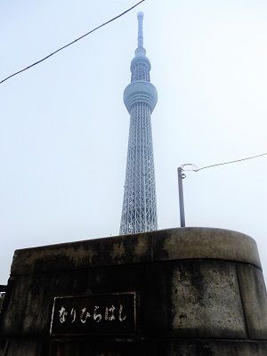 ここでは、伊勢物語のことなど思いつつ、業平橋とスカイツリーのツーショット。​