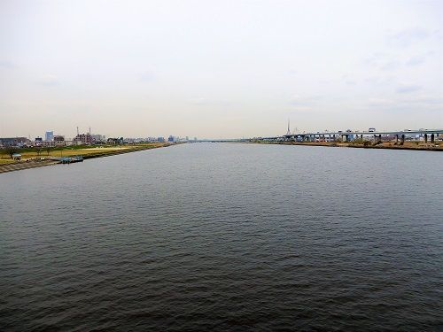 (荒川 平井大橋から上流側を望む 右は首都高中央環状線)