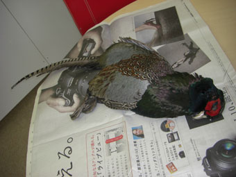 長野で獲れたキジです。もう某イタリアンに納品しましたがこの大きさや毛の色の綺麗さに驚きましたキジは日本では本州、四国、対馬を除く九州に生息していると言われています。キジ肉は鶏肉とはかなり異なります。栄養価を比べてみても蛋白質が多く脂質が少なく、カロリーが鳥肉の約半分!歯ごたえがあり、味が濃く、それでいてさっぱりしていて上品なので高級食材として人気があります。またキジは飛ぶのは苦手だが、走るのはとても速く、スピードガン測定では時速32Kmを記録した。との報告も・・・。これはヘェヘェ(トリビア)ですねPS.かるびあ~のには同じく長野から猪ロースが入荷しました!若くて新鮮なので 臭みはまったくなく旨味抜群!ご賞味あれスタッフ募集!●かるびあ~のでは1号店をより充実させ、将来2号店オープンに向けてスタッフも募集しております。社員・バイトどちらも募集です。やる気ある方限定で男女といませ~ん条件・時給・給与など、働き方も要相談です興味がある方はご連絡くださ~い!!メール shimamoto@birichino.co.jp TEL03-3453-0943(担当は私シマモトまで)★かるびあ~の その他の掲載情報はこちら→ 『セコム・ジゼル・食楽など』 ●炭火焼肉かるびあ~の●新橋3-7-4 赤レンガ通り沿いです。最寄は新橋駅TEL 03-3519-2929(にくにく) 野尻料理長まで★こちらグルメ通販サイトも好評発売中です♪http://no1gurume.jpナンバーワングルメ全国お届けプロジェクト★オーナーの高校時代同期、広島黒田投手のオリジナルTシャツ通販サイトです。