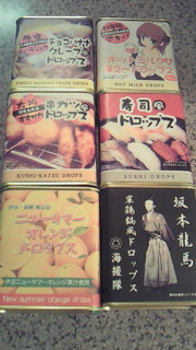 またまた。。。ドロップだよ(笑) 今回、いただいたドロップは。。。悲鳴やね(笑) しかし、150種あると、言いましたが。。。20個程制覇は、しましたが。130個、、、もう(-ロ-;)大丈夫だよー段々、怖くて、体力なくなるわ(笑)このドロップ。中には本当に、美味しいのもある。甘い系は大丈夫かな? この、寿司は?あまり味がなく。醤油みたいな、、、前の海鮮に比べたら大丈夫(>_<)(笑) 串カツは、ソース(笑)途中ギブアップです。 そして、坂本様。。。すいません。無理!!食べた方も数人。。。全員即!ギブアップでした(_´Д`)ノ~~食べたい方、店にあります。声かけてね!! ちなみな、持ってきた本人もギブアップでした(笑)