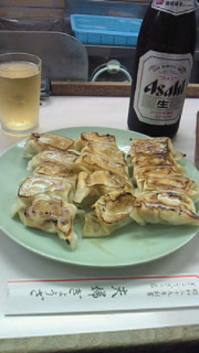 急遽。。。決定した。 天満ブログのメンバーが、今回は、、、新開地!? 前回は、、、次回遠出!?と予告したんだけども。。今月もう一度あるんです(笑)そちらの予定を示していましたが。。。ラッキーな事に。。。急遽集まりで新開地(≧▼≦) いつも来ていただいてるメンバーの方に、神戸の方がいるので、、、いつも来てもらってばかりなんで、、、新開地に行きたかったし。。。行ってきました!!到着して感じたのは、、、博多?仙台に見たような作りでして、テンションが一気にあがりました。 これは、楽しめるなー。 案内されたのは、餃子専門店で(^^)v メニューは、ライス、餃子、1人前、1、5人前しかないです。 カウンターは、10席くらいかな? 私は1、5人前と、ビールです。(餃子は15個です) 待つ事10分かな?15分くらいかな。。。出来上がり。食べると。。。皮は分厚いです。餃子は、やや丸い型でして、噛んだら中の肉汁が、沢山出て火傷しかけた。餃子のタレは自分で調合スタイル。味噌も置いています。 ここは昭和29年に創業されたらしく。餃子一筋で、嬉しいですね(o^o^o) 食べている間に、厨房では皮を作っていた。。。もう、必死で見てしまった~(笑)見ても、盗めなかった(笑)パクパク食べて、、、すぐに無くなってしまった。。。また食べたい(;_;)でも。。。次に行くからと断念。。。 空きっ腹でビールから入ったから。もう良い気持ちで、ご機 嫌さんに。。。(^^)v 次は、居酒屋さんの二階にあがり。。。串カツやら、ホルモン炒めやら頼みました。。。しばらくすると、店員さんが。。。鰺の姿造りが登場!! うん?頼んだ?? 店員さんは、良かったら・・・と、、、販売に来たみたいで。。。 断ってしまったけど。。。ここでは、私は梅サワーを飲み。。。ダウン(-ロ-;) 頭が痛くなり、眠くなり。しばらく頭かかえながら寝ていた。。。 そして、頼んでいた、、、玉子雑炊が登場!! 目がさめた(笑) その雑炊が、プチ釜戸で出てきたんで、、、 また私は。。。店員さんに、頼んだ?(笑)て聞いてしまいました。。。 そして説明無しで、置いて行ったんで。。。とりあえずは火がついている。。。でも、中身が、めっちゃ気になったから。。。皆に、ごめん。蓋あけて見ていい???て言うて、見た(笑)中は、シーンてしていた(笑)(^m^) そして火が 止まり、、、 メンバーが、この玉子は?て聞いてきた。。。 あっ?玉子雑炊よね(-ロ-;)入れないと・・・慌ていれた。。。そして余熱で、まぜまぜ。。。四等分にして、、、食べたら。ダシが効いて!これまた、美味しいかった!!(*^□^*) ここで復活!! 次は、、、お洒落なBARにとの事\(^O^)/飲むぞ~~ 道は、わからないけど。 新開地駅から近くの、二階にあるBARであります。 暗くて、しかし照明は、ビンだらけ。。。綺麗やな。300本くらいあったかな。(見える範囲で数えた、、、やはり酔ってる?私?(笑)こんな行動。。。 まずは、胃に優しくで、木苺リキュールを牛乳割りに。。。 甘酸っぱくて良い感じ。 次も、バナナリキュールの牛乳割り。 美味しい(^-^) 次は、ヨーグルトリキュールの牛乳割り。。。 止まらなくなってきたんで、、、最後の一杯にすると、、、マスターに、、、 パイナップルベースで、、めっちゃ酸っぱいのん!すっぱーいのん!!と頼み。。。ほんま、すっぱかった(笑)餃子で火傷したとこが、この、すっぱさで、めくれた(笑) (*_*) そして、アテは、ミックスナッツ。。。サラミ、そして気になっていた、大きな生ハムを切ってもらい。。。そこで時間切れで、、、お開きに。。。 いやい や楽しかった(^-^)大阪駅から自転車で帰宅やったんで、、、ちと、しんどかった。帰ってから頭少し痛かった(笑) 集まりの。。。。。。。。次回予告。。。食欲の秋・スポーツの秋です(^m^)