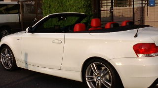 白いボディに赤いシート...この革のシートが可愛いでしょ?