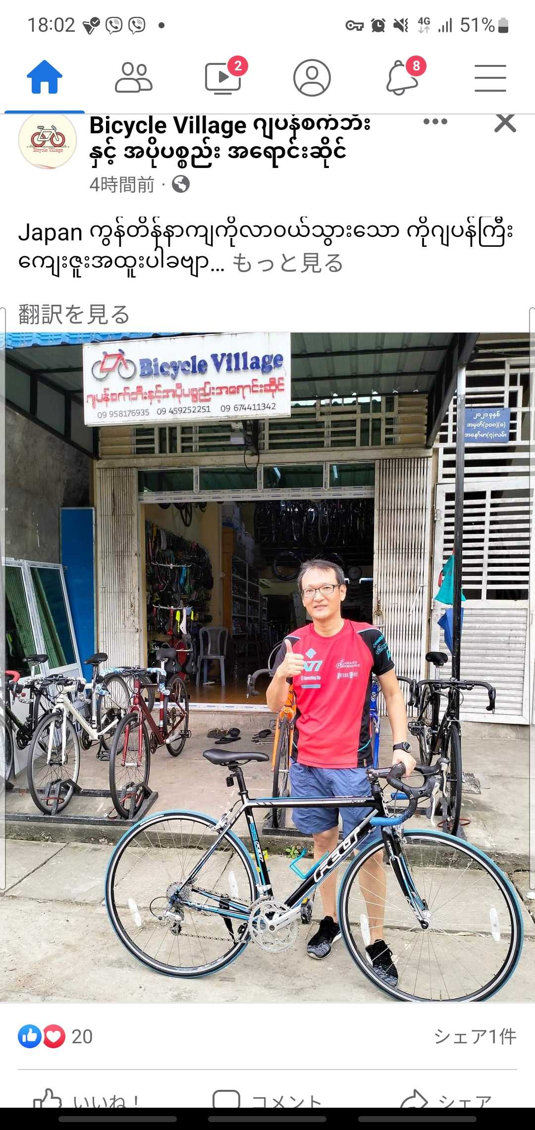 ヤンゴンでロードバイク購入しました!十数年前のボロボロのロードバイク。800,000ks → ネゴで780,000ksさすが有名ブランドなので物は悪くはないがこのショップ、バーテープの巻き方間違ってます💧片方のブレーキレバーラバーブーツ無ししかも購入初日にペダル外れました😓スタンド付いてるけど蹴っても跳ね上がらん😤速攻外して捨てたワミャンマーやなぁ〜