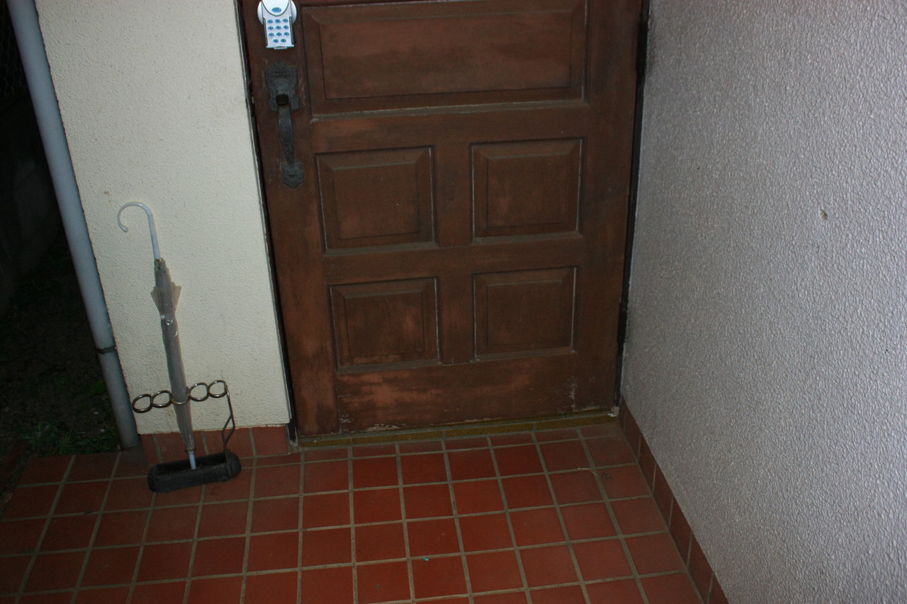 私の家は築ウン十年ととても古いので…押し入れの底が落ちたり台所の排水が流れづらかったりぼろぼろになった網戸を貼り直したりトイレの床を張り直したりネズミよけに玄関下の隙間を塞いだりネタにしていないようなことも含めて色々手直ししながら住んでいますで、今回は玄関…古い写真しかありませんが…こっちは下半分しか写ってないし…こっちは見切れちゃってますね~(^^ゞ…だから~作業開始前に撮れよ~と思うんですが、ちょっと試すつもりが作業開始~って事が多いのよ(^^;あ~あったあった…玄関をまともに撮影したやつが…ちょうど2年前頃の玄関ですなので、まだ指紋認証に変更する前なのでサムスンの電子ロックがついていますこの写真でさえ塗りにムラが見えるし、ウロコ状の塗装剥がれも多々あったはずでそれから更に2年放置してますので、状態は推して知るべし…ですで、作業をするために買ってきたものは…ダイソーのワイヤーブラシとダークブラウンの塗料くらい…屋外なのでさすがにちゃんとしたものを買ってきました(^^ゞで、いい加減ですがウロコ状に剥がれてきている塗装を落としてざっと水で流して乾燥待ち…ドアノッカーも取り外して…元々の色味なのか長年の汚れなのか真っ黒意匠としてはライオンなんでしょうけど何がなんだか…金属なので硫酸にでも放り込んでやれば一発なんでしょうがそんな物はない!キッチンハイターの原液に漬け込んでからブラシとリューターで擦ってやって…この程度には金ピカになりました多少黒いところも残っていますがそれはそれで良いのかな…と言う感じです…実はここまでは昨日やっておきました一晩明かした午後からの作業なので乾燥は十分で…サクッと塗り終わりましたこんなことを始めたのは…元々ついているドアクローザーがうまくドアを引っ張り込めない…昔から何度もドアをいじっているので、蝶番の位置を狂わせてしまったせいで引き込みきれない様子…じゃあ新しい物なら引き込む力もつよいだろうし入れ替えてみよう…とドアクローザ ブラック 玄関 室内 自動ドアクローザー 油圧 自動閉門ドアストッパー 玄関ドア 引き戸 自動閉鎖 調節機能 自宅 ステンレス90°ストップ機能付きこいつを注文したんです。それで取り付け前にドアをきれいにしようと思い立ったわけねただね~このドアクローザー…商品説明にも90°ストップ機能付きと書いてあるのにないのよ説明書を見るとドアストップはアーム部分の違いのようで入っていたものはどう見てもストップ機構のない方のアームなので、返品確定…というか、もう返送しちゃいました仕方がないので、ドアがきっちり閉まるように調整して今までの蝶番を引き続き使うことにしました蝶番の下にスペーサーを入れてみたりネジを締め込んだり、緩めたりしてなんとか、扉がちょうど良い位置で止まるようにつじつまを合わせました最後の引込動作がない今までのクローザーままなので、ドア全体のつじつまを合わせて静かにはなりましたが、それでも閉まるときには「バタン」と結構な音がするので戸当りテープを貼ってやって一通り完了となりましたということで、玄関ドアを簡単にメンテナンスしたというお話でした