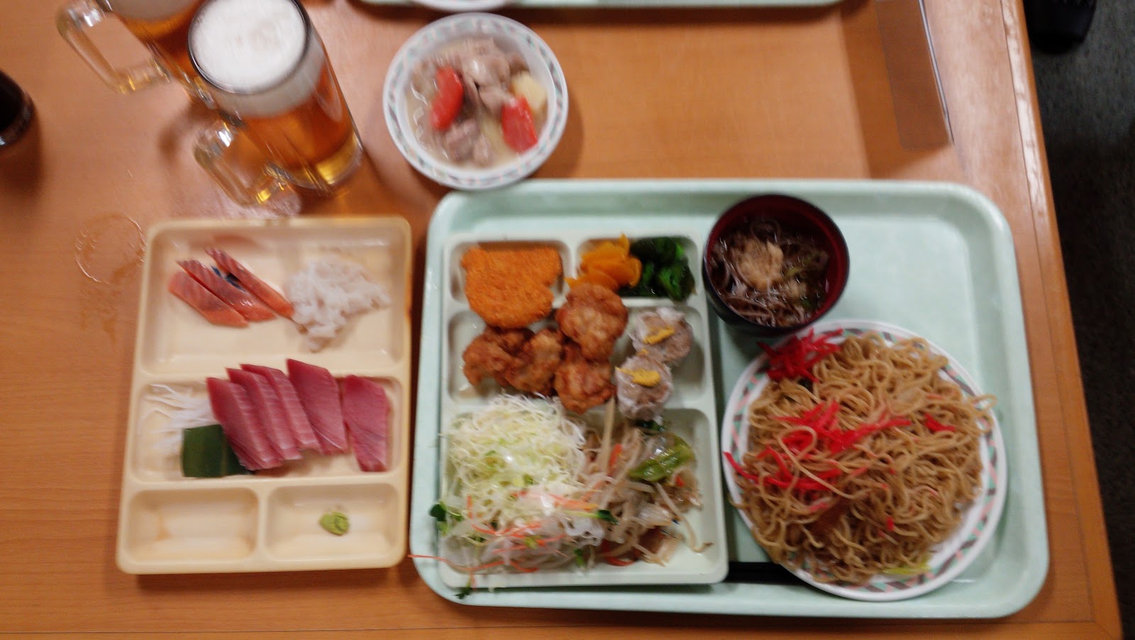 こんな感じで、バイキング形式で「給食?」という感じですが