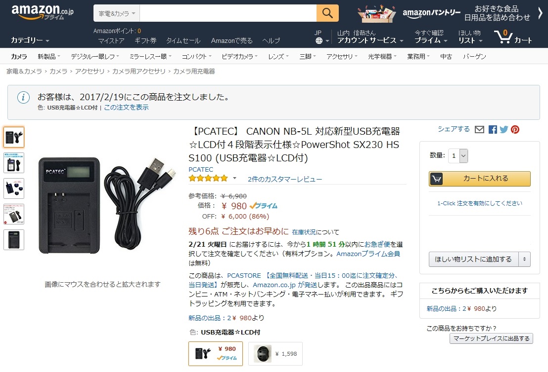 ※本体の購入は15日で先週ですが充電器が今日到着したので今日のネタとして書いています
