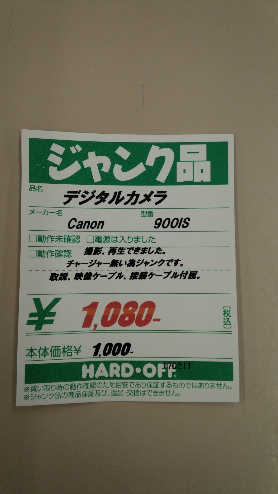撮影ができた時点で「完動品」と判断したわけです(まあ単三電池位は付いていたかも知れませんがね)