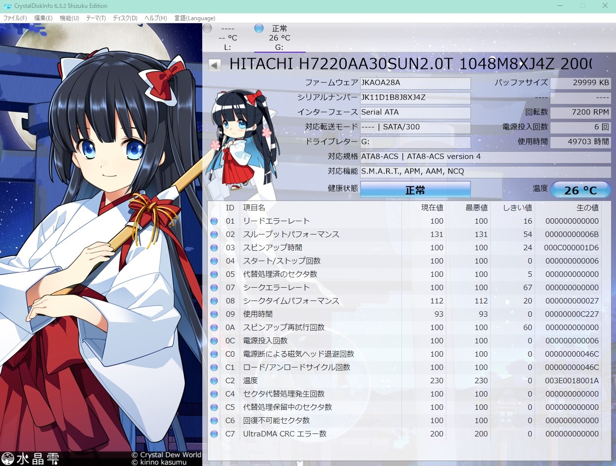 SMARTは後掲しますが、ホコリなどの汚れも無くきれいなもの