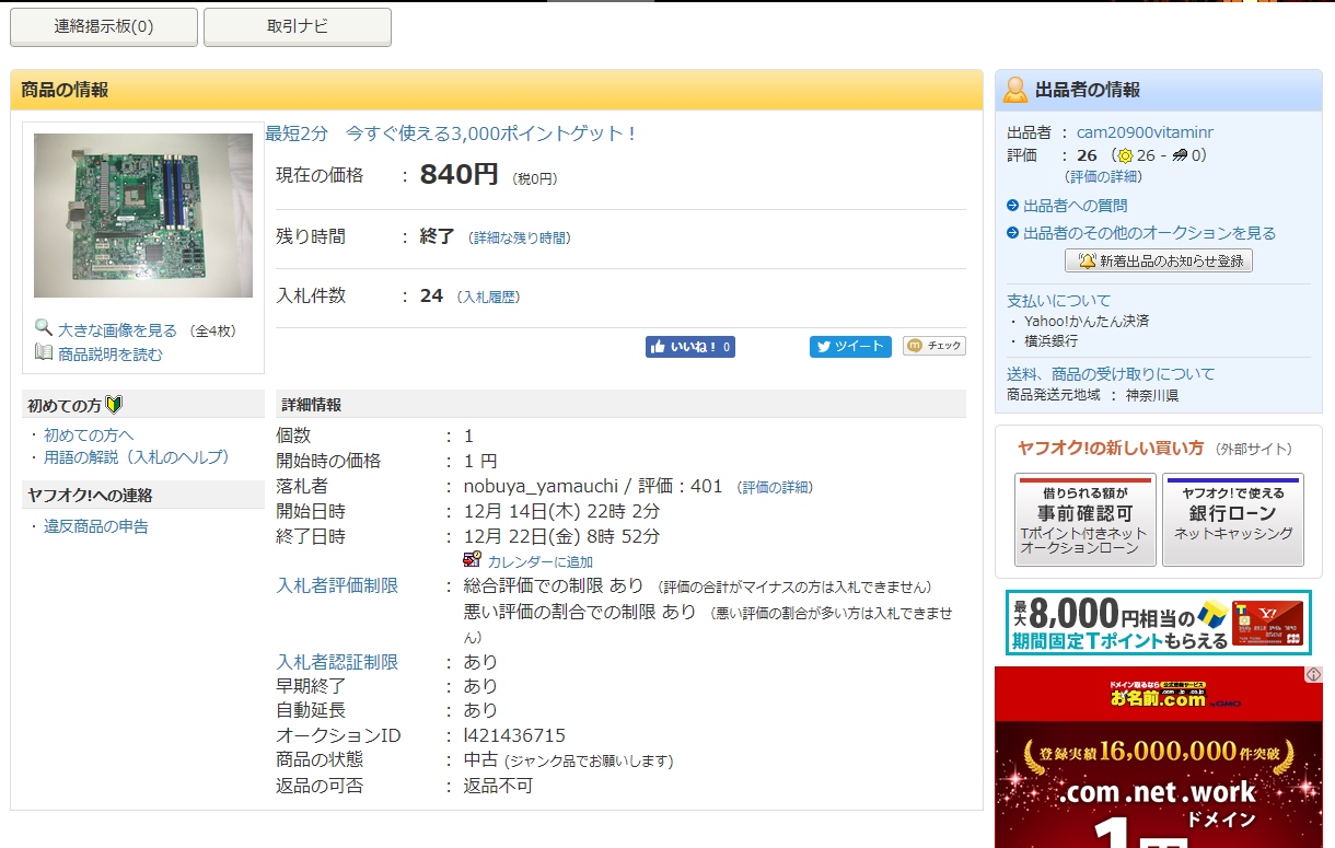 私の入札額を超えられなかったので、時間切れになったみたいです