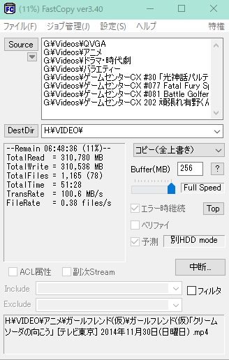 で、大量のコピーすると止まっちゃうので、あえてUSB2接続でコピーを始めてみました