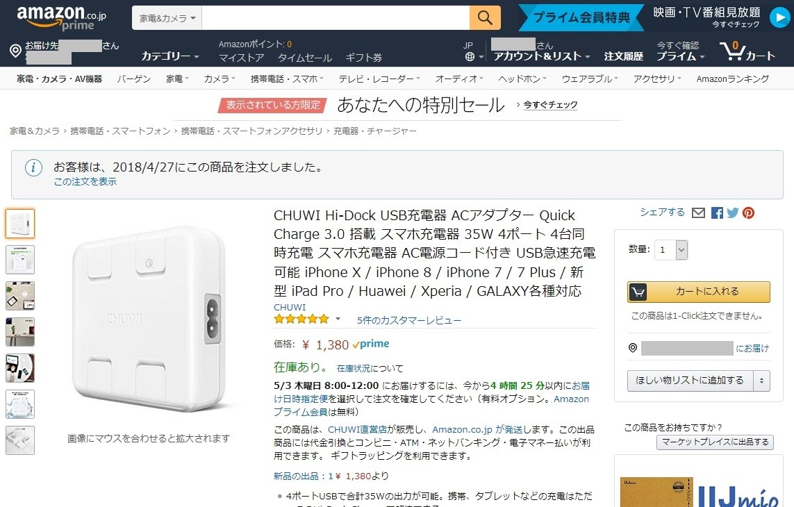 Quick Charge 3.0に対応しているので、充電が早いというのが売りですが