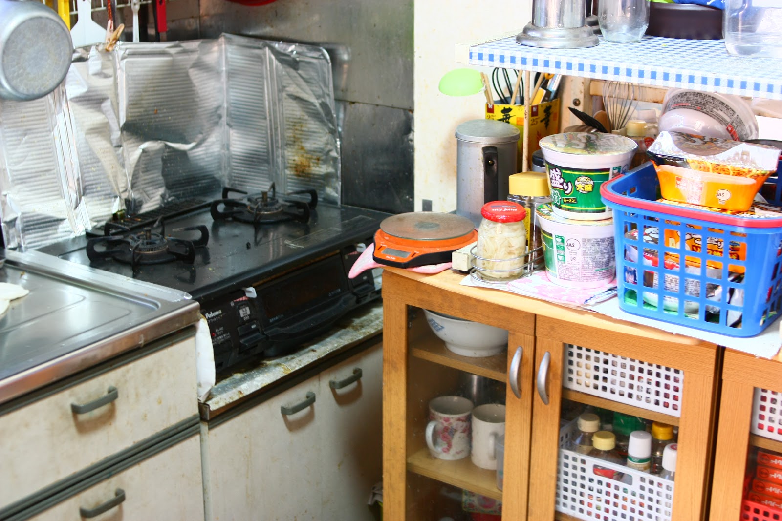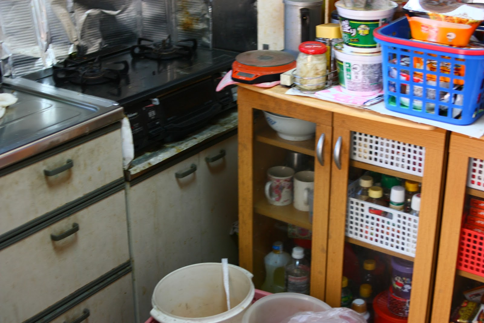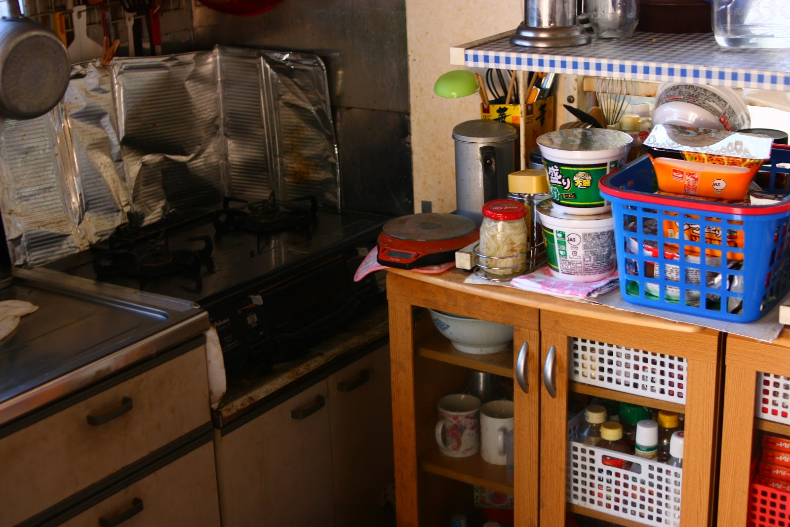風呂場の窓越しに西日が入るのでそれなりに明るいですが、奥のガスコンロが潰れ気味です