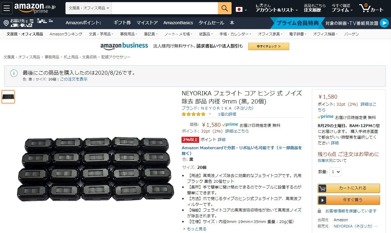 ぱっちんコアと呼ばれる簡単にケーブルに止められる分割フェライトコア