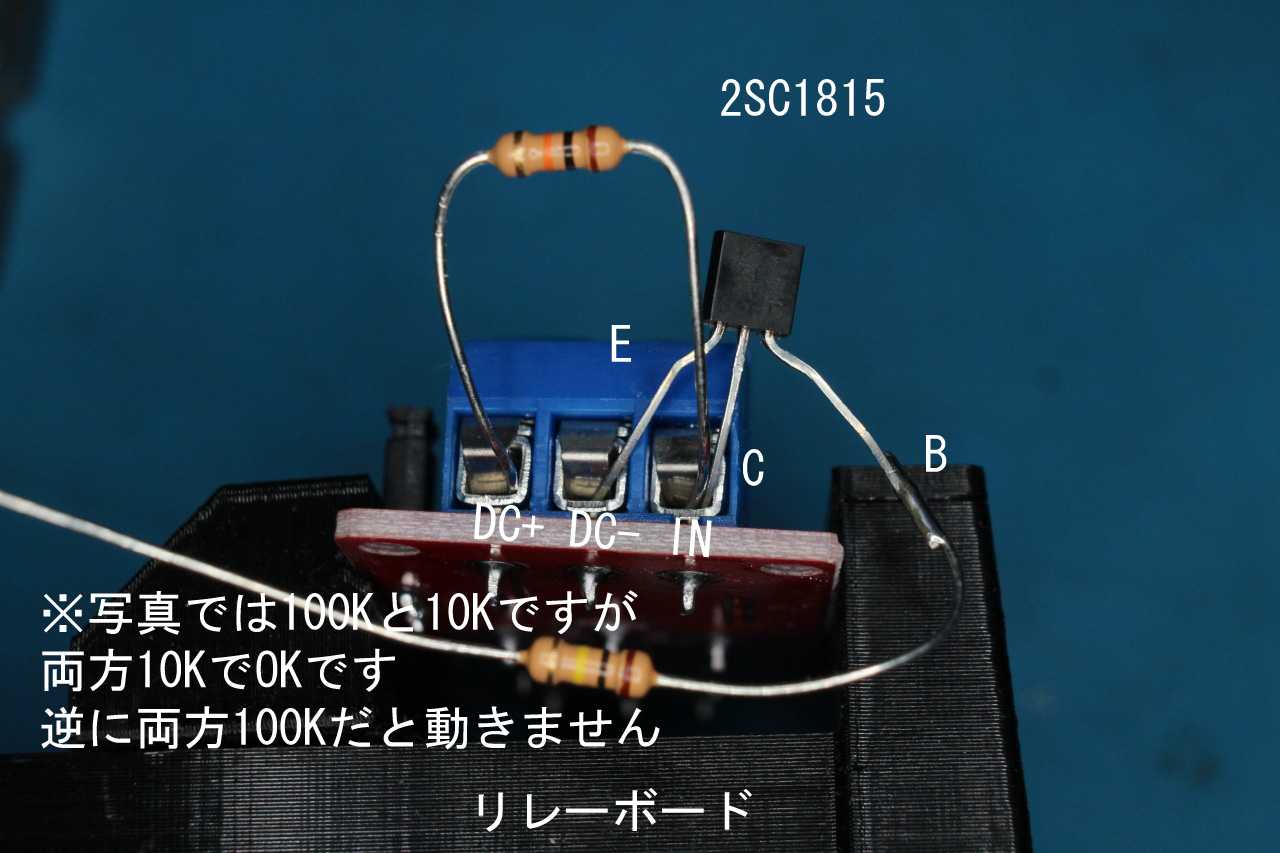 この回路のコレクターがフォトカプラではなくリレーボードの信号入力になるわけで…