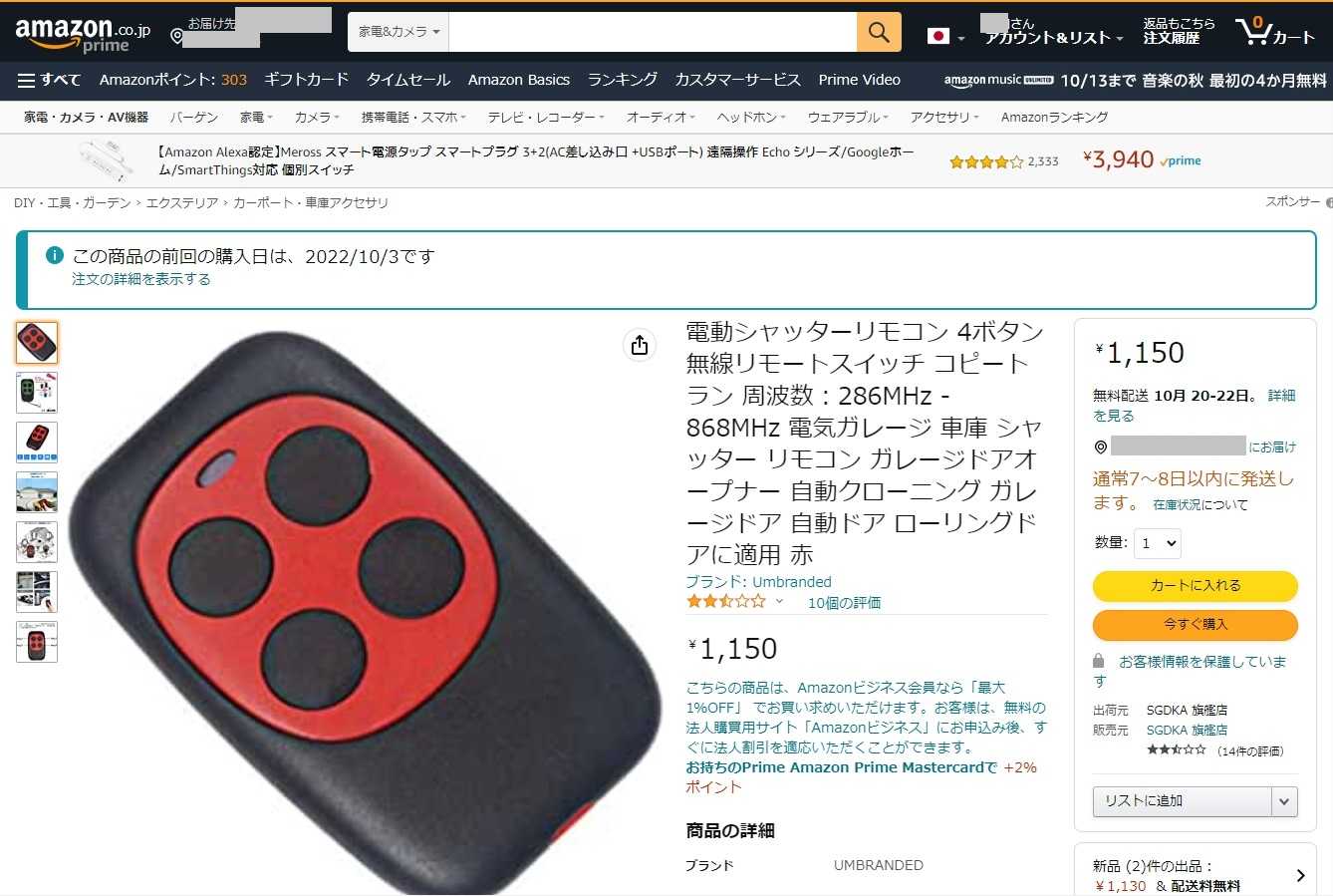 私が注文したのは赤です…色違いでも広帯域で学習してくれるなら笑って許しますが