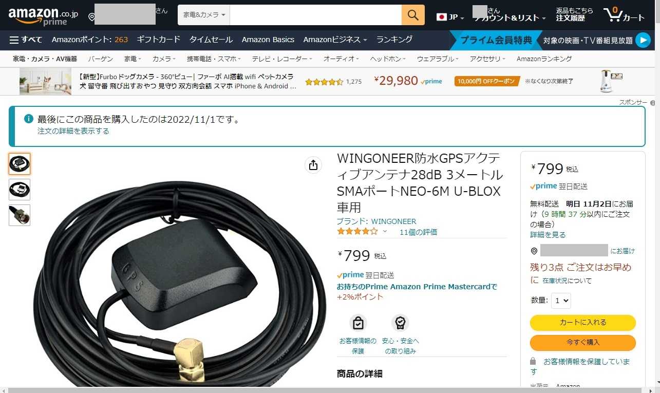 トータルで今回買ったGPSアンテナ代くらいはポイントで帰ってくる計算ですね